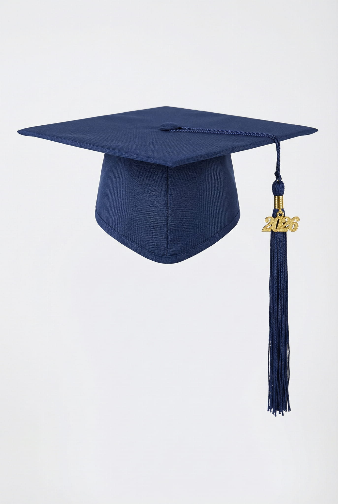 Marineblauer Absolventenhut 2026 mit Quaste und Goldanhänger