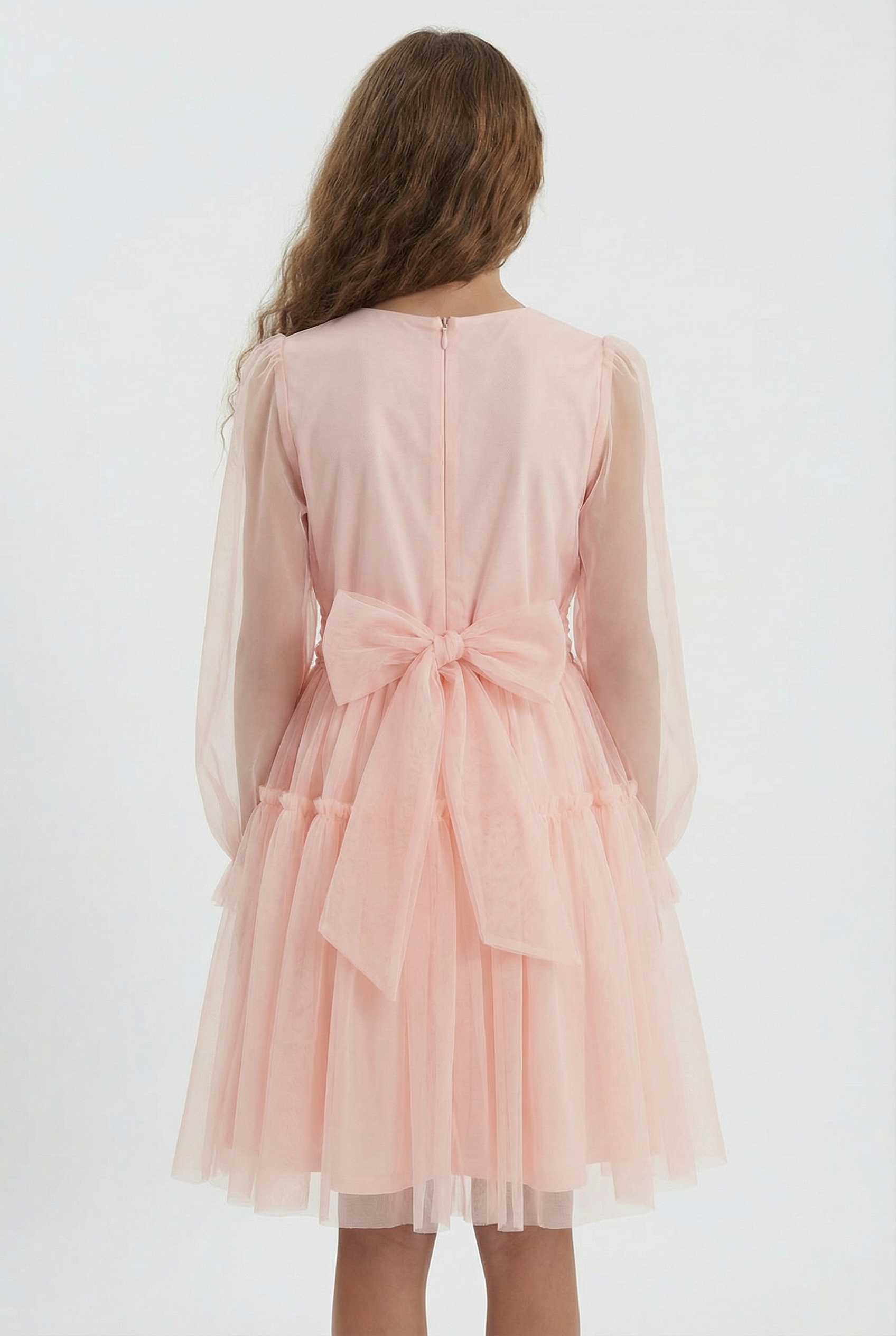 Mädchenkleid Holly in Apricot Rosa – Festliches Tüllkleid mit langen Ärmeln