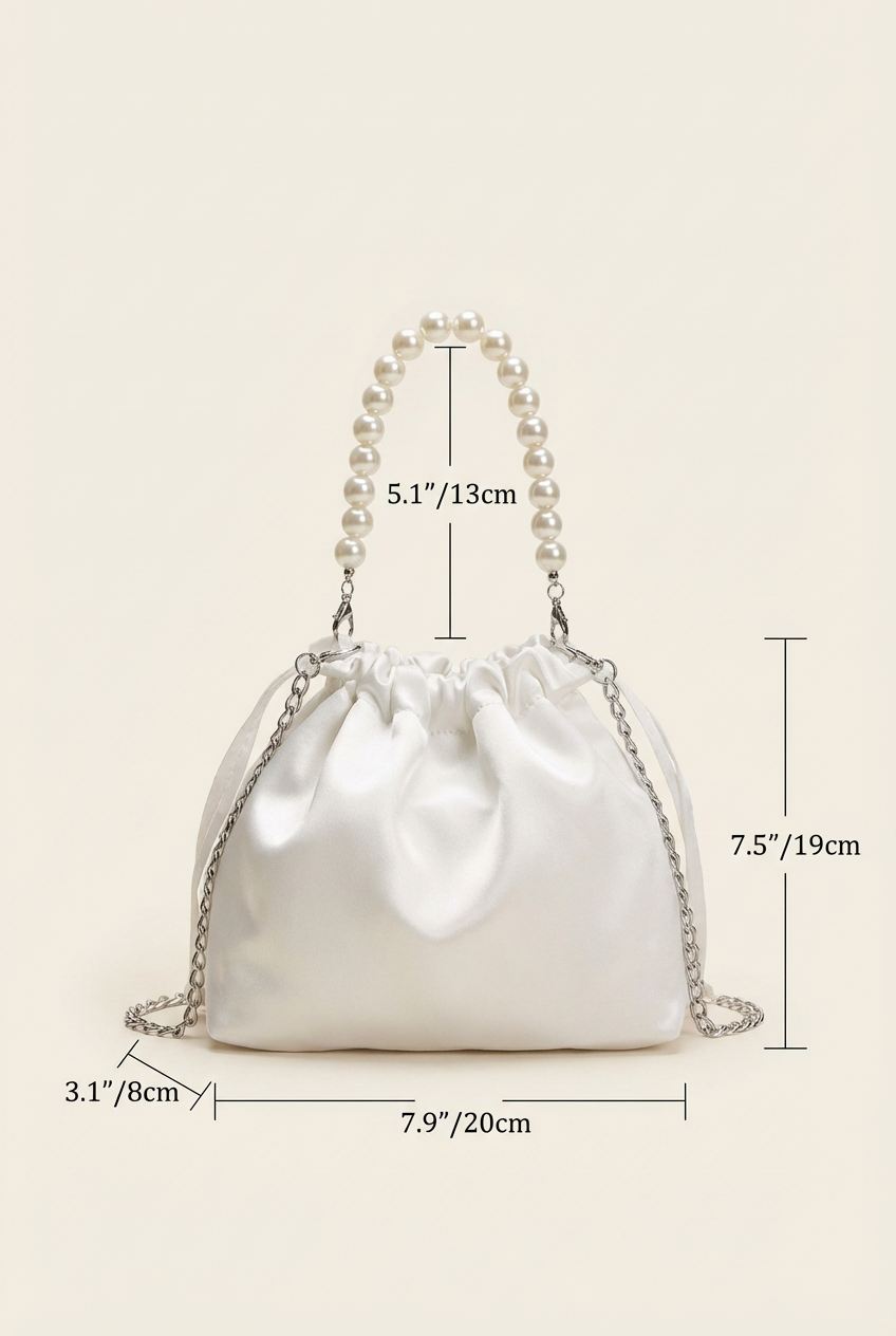 Elegante Kommuniontasche für Mädchen mit Perlengriff und silberner Kette